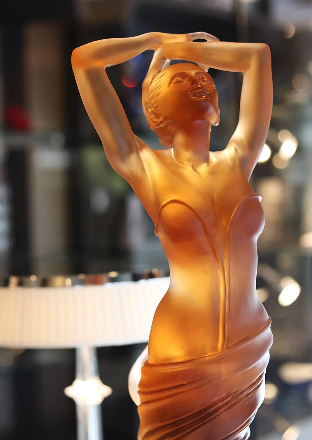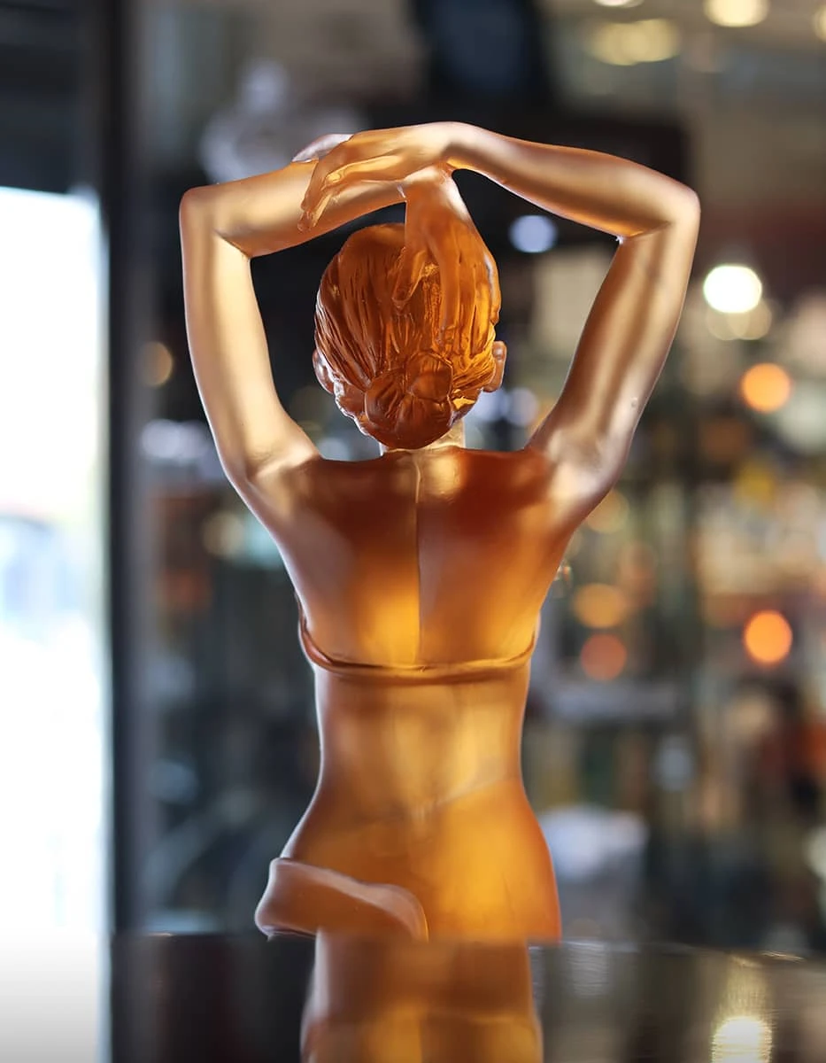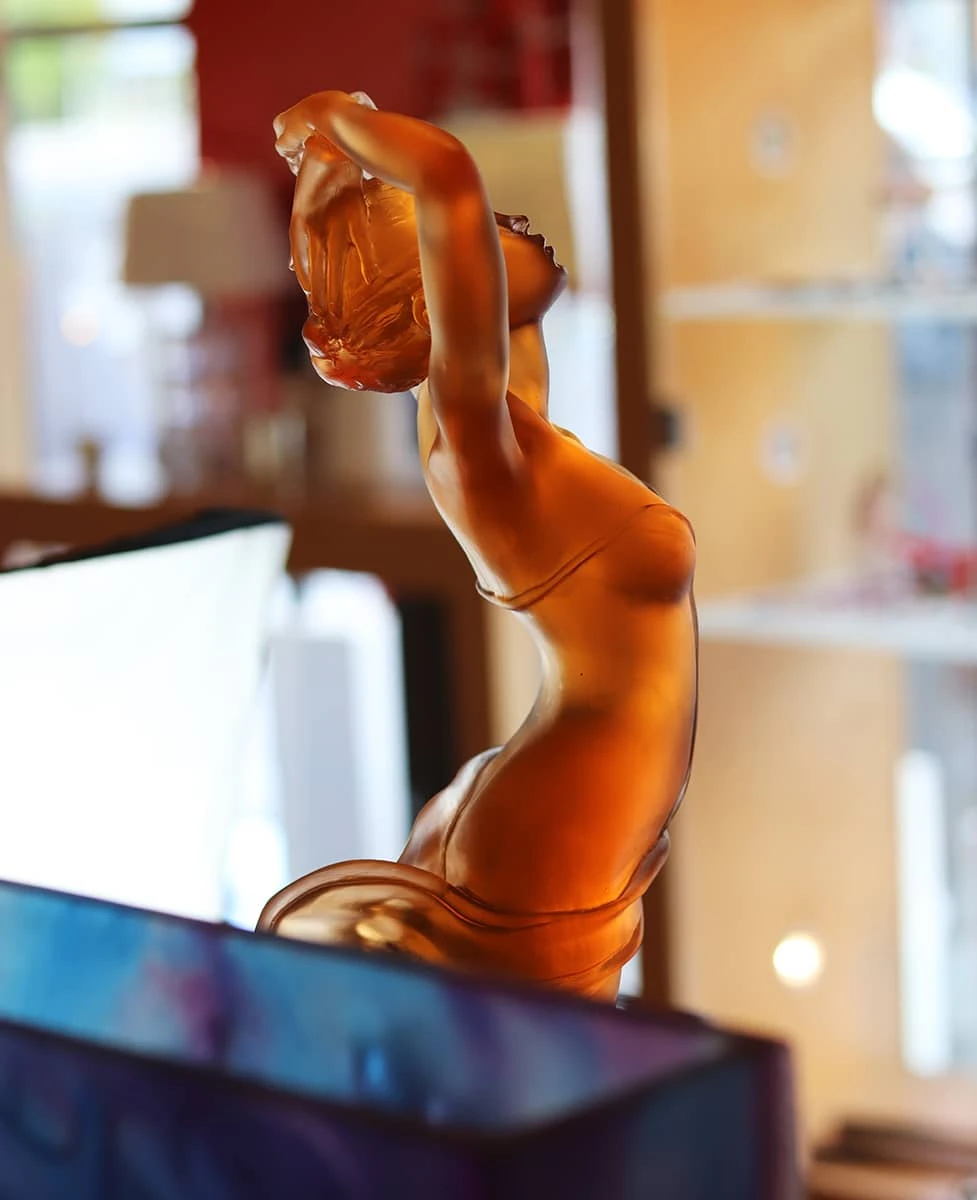 « A Cœur Battant » célèbre la féminité, source d’inspiration inépuisable pour Marie- Paule Deville Chabrolle et la Maison Daum. Daum cristallise le mouvement délicat et dynamique de la danseuse, dont émane grâce et émotion. La sensualité de l’œuvre est sublimée par la transparence, les couleurs subtiles et le rendu soyeux de la pâte de cristal Daum.