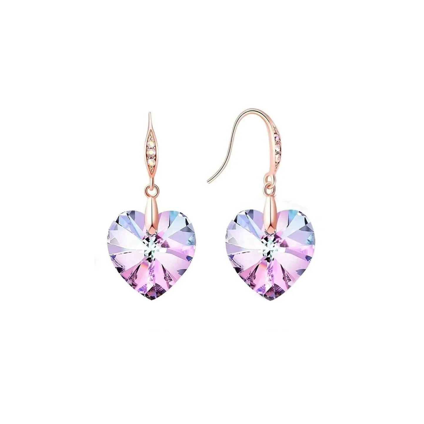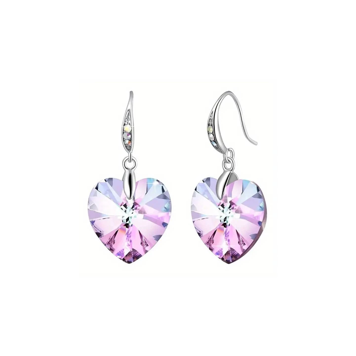 Ces boucles d’oreilles en forme de cœur sont une ode à l’amour et à la lumière. Le cristal taillé au centre est un prisme éclatant qui capte chaque rayon pour le diffuser en une myriade de couleurs vivantes, rappelant la joie et la chaleur d’un cœur rempli d’amour.