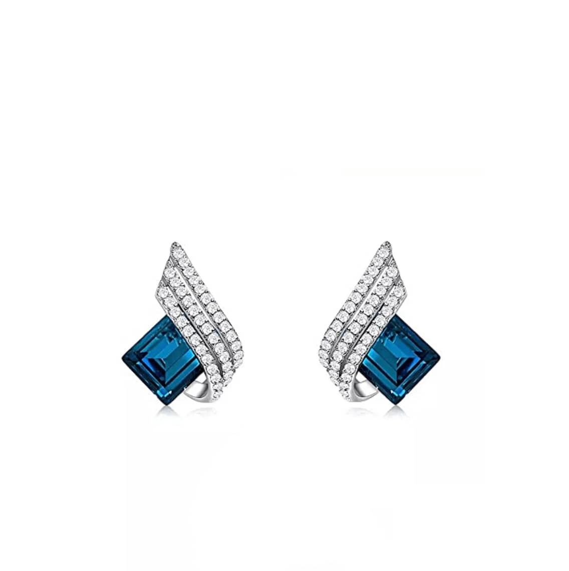 Son design présente un cristal bleu profond, taillé avec précision pour maximiser la réflexion de la lumière, enchâssé dans une spirale ascendante de cristaux scintillants.