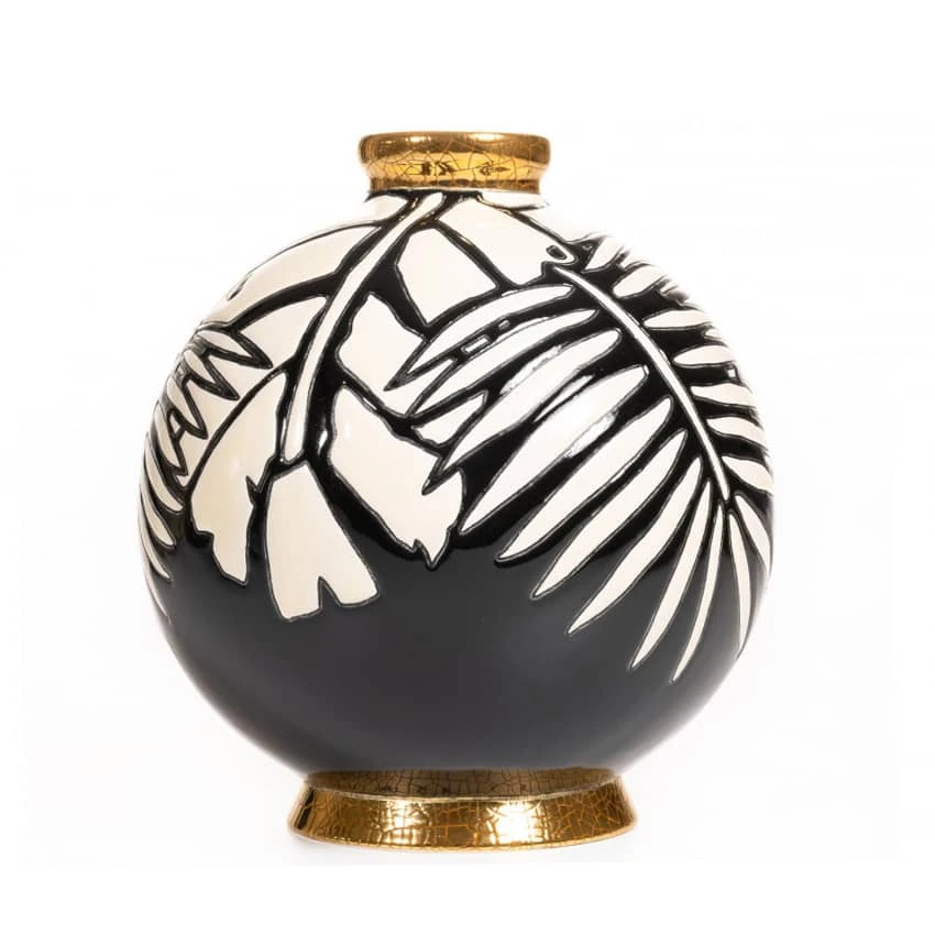 Le noir des feuilles de palmes géantes et des plantes tropicales marié à la brillance des émaux renforcent le caractère luxuriant de cette création.