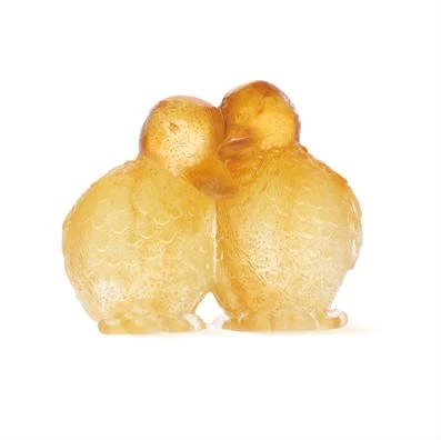 Sculpture en pâte de cristal de la maison Daum, le duo amoureux de canetons.