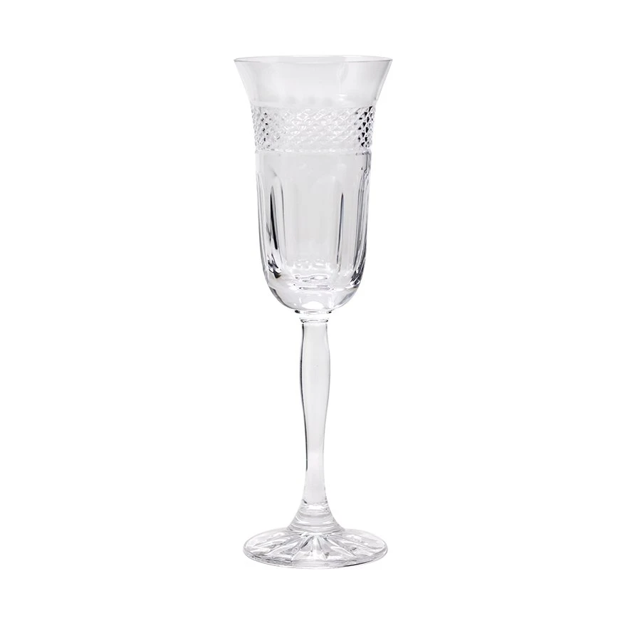 Experience the timeless elegance of the Mireille collection by Cristal de Paris. This exquisite champagne flute celebrates the heritage of fine French glassmaking, combining classic cutting techniques to create a masterpiece of light and clarity. Whether for a wedding toast or an intimate celebration, the Mireille flute transforms every sip into a luxurious experience.