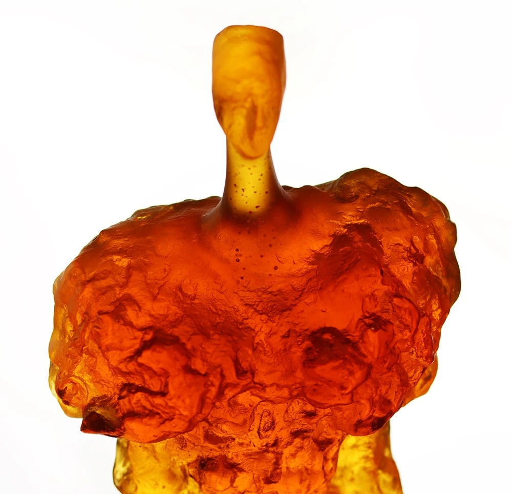 Pour Daum, Louis Derbré transpose en pâte de cristal cette dame qui veille sur nous. Cette sculpture longiligne offre à la fois la bienveillance et la générosité d’une mère pour l’humanité toute entière.