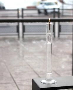 En 2011, Godefroy de Virieu et Stefania di Petrillo tirent inspiration d’un verre de la collection Apollo. Jouant avec sa paraison, ils la renversent à la manière d’une cloche éclairante, la dotant d’un anneau en acier chromé de dimension similaire. C’est ainsi que naissent les premiers luminaires de cette collection.