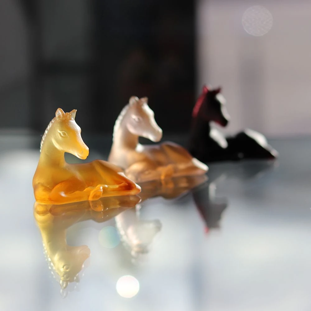 Daum France, sculpture de lumière, utilise le procédé de la cire perdue permettant la réalisation de formes complexes. On obtient alors une superbe fidélité du décor et des dimensions. Dernière étape du processus de fabrication, l’artisan verrier brise le moule en plâtre pour y découvrir sa création.