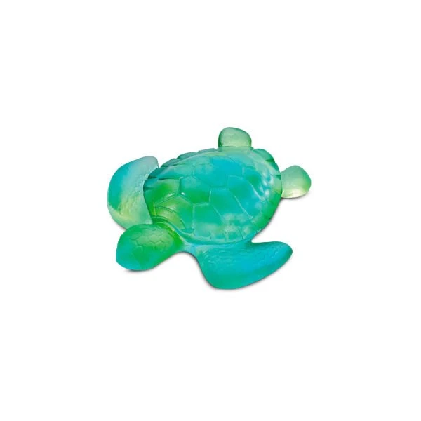 Mélange de cristaux aux couleurs des lagons lointains ou des terres d’ailleurs, les tortues font partie de la grande arche des animaux en pâte de cristal Daum. Splendide sculpture signée Daum.