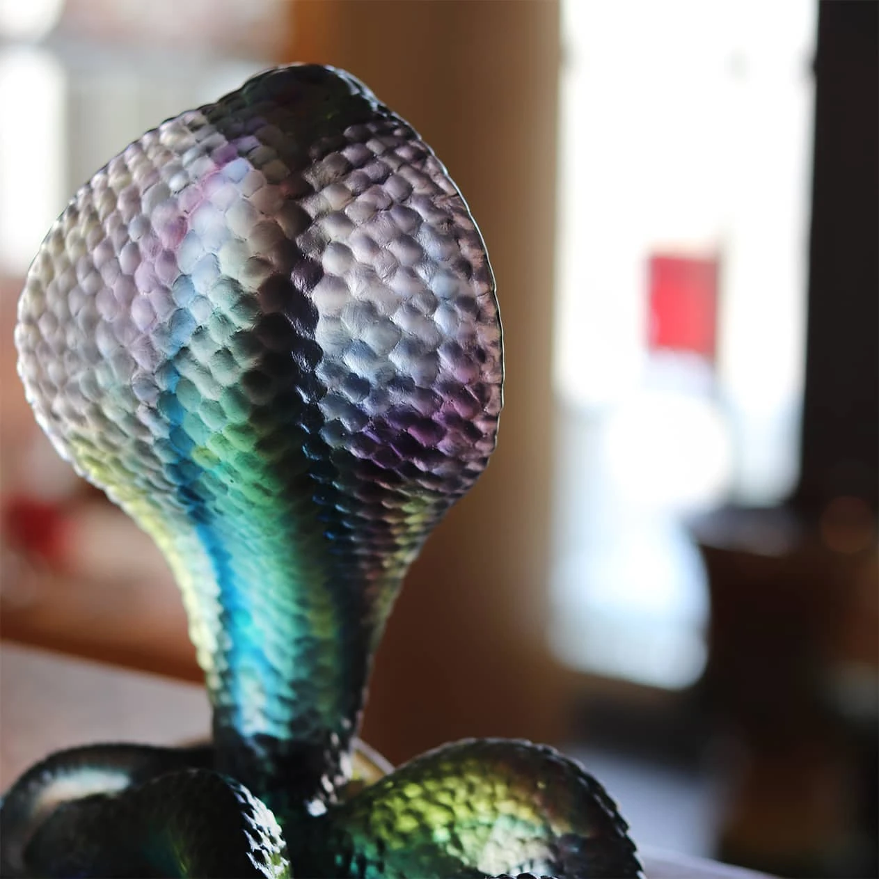 Le cristal Daum sublime le caractère majestueux ainsi que la grandeur de ce cobra, lui donnant transparence et reflets de couleurs dans un dégradé raffiné.
