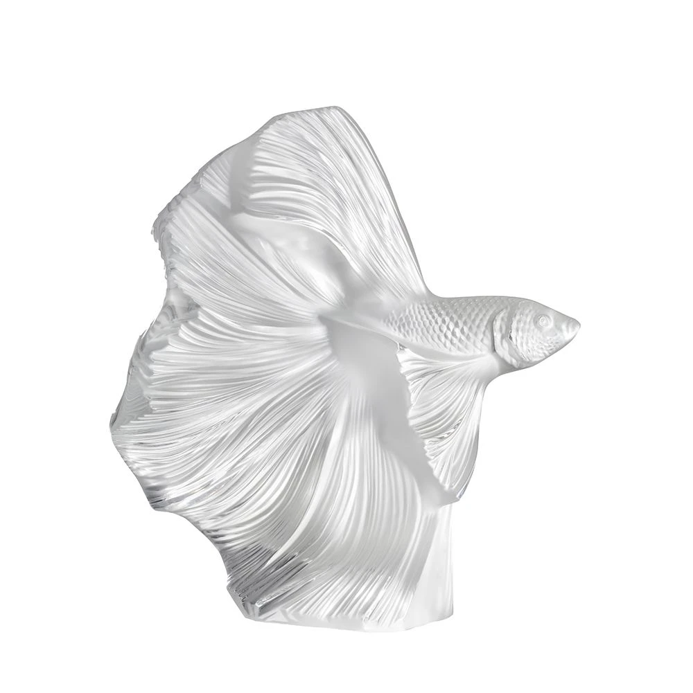 La nouvelle collection aquatique Lalique s’inspire de la faune aquatique à travers de somptueux poissons combattants, aux reflets et transparences inédits. Semblables à des voiles colorés, leurs amples nageoires ondulent et s’entremêlent dans un spectaculaire ballet aquatique.