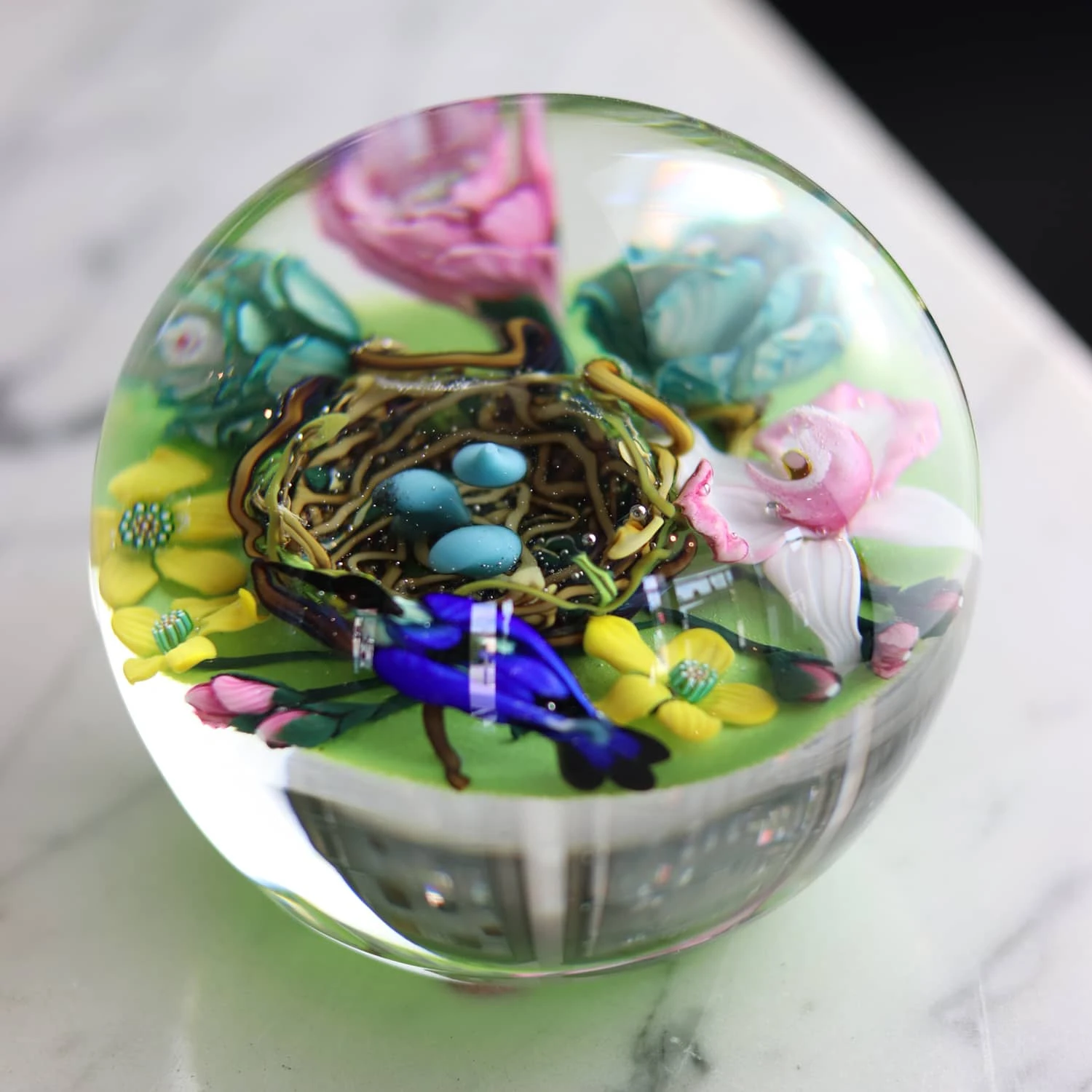L’art du presse-papier est un incontournable dans le domaine du verre. Véritable prouesse technique, la fabrication de presse-papiers demande plusieurs années d’expérience. En effet, il s’agit d’un assemblage à chaud de couches successives de cristal.