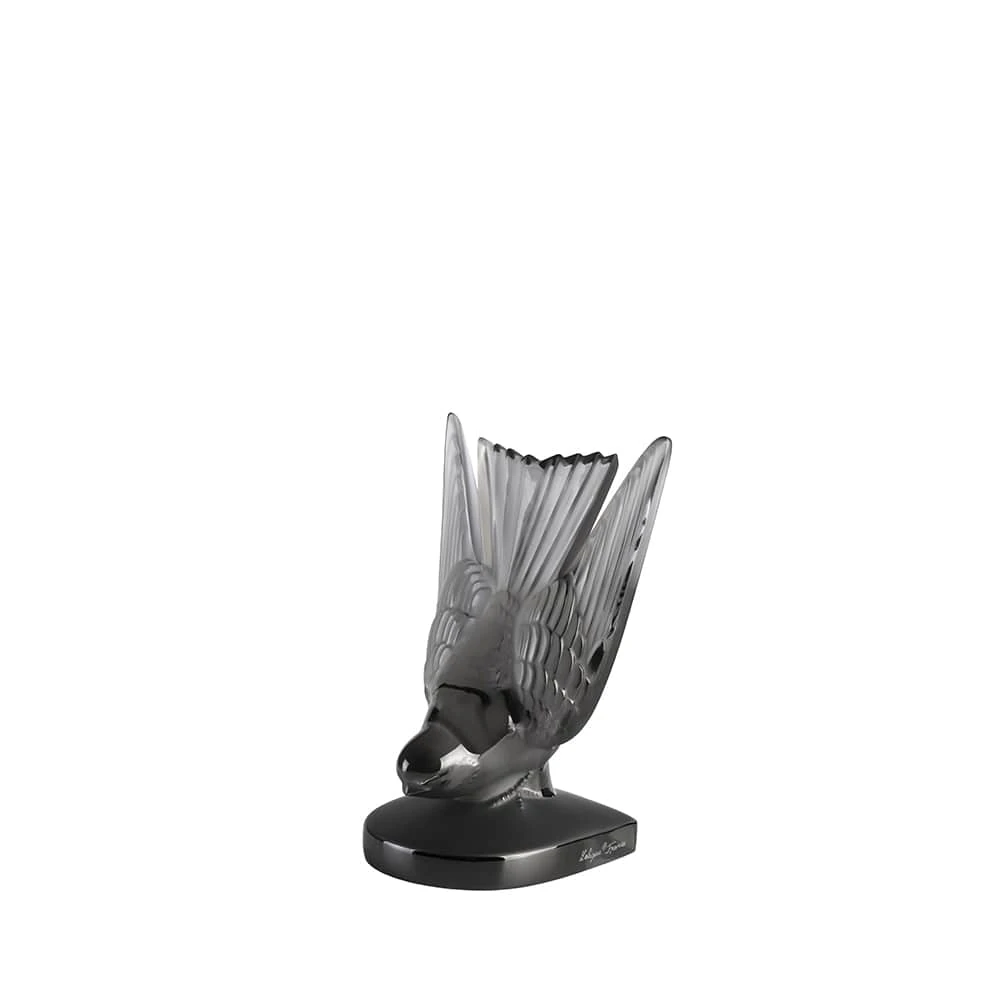 L’emblématique Hirondelles de René Lalique est ici décliné sous forme de presse-papiers, en cristal gris et finition lustré or.