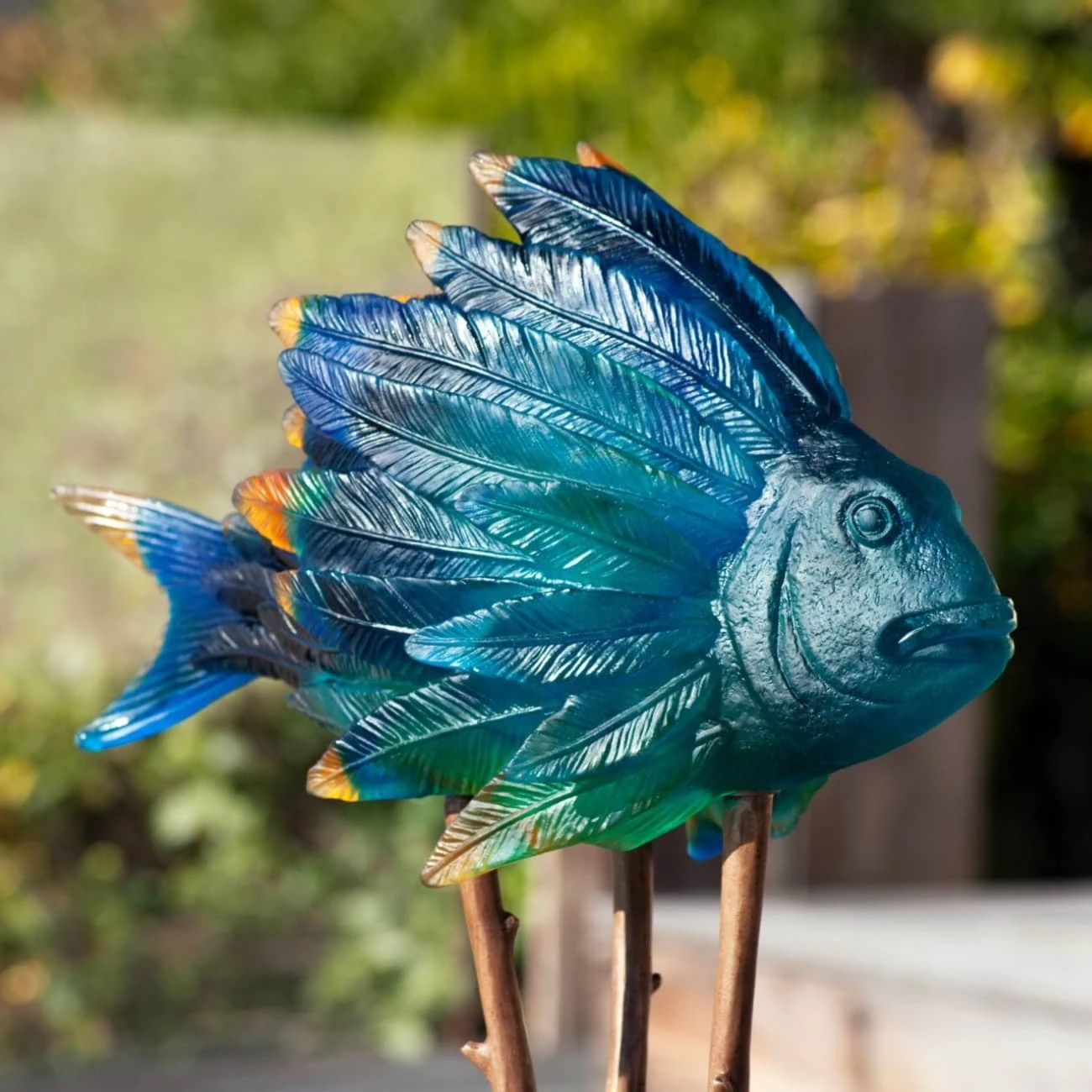 L’artiste Patrick Rougereau, connu pour sa poésie visuelle et sa créativité sans bornes, a imaginé une œuvre remarquable : le Punky Fish. Cette sculpture, aujourd’hui magnifiquement cristallisée par la Maison Daum, est un tourbillon de couleurs, alliant le bleu profond à l’ambre chaleureux, capturant l’essence d’un monde à la fois aquatique et aérien.