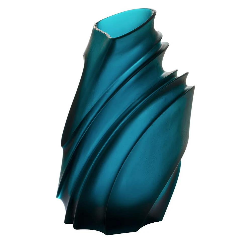 La collection Sand se décline dans d’harmonieuses couleurs : bleu, violet et vert olive. Toutes les pièces sont en éditions limitées, numérotées et signées. Ce vase révèle un design différent de chaque côté: une face aux formes dynamiques et une face plus douce révélant comme un drapé soyeux. Découvrir la collection Sand.